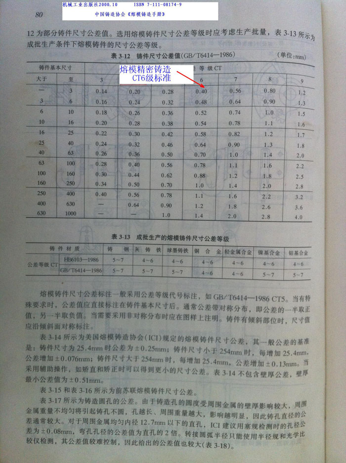 硅溶膠熔模鑄件尺寸公差CT6級